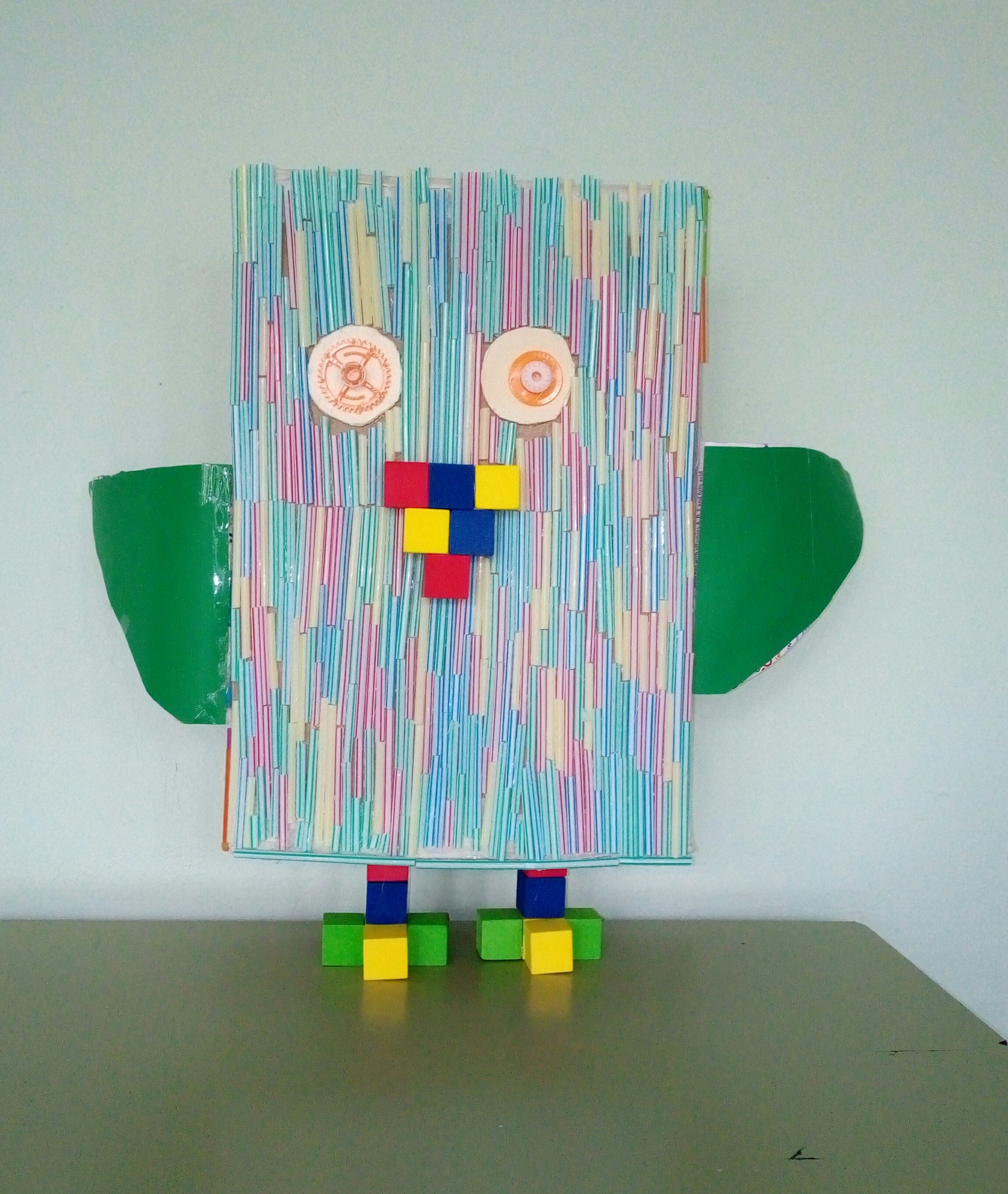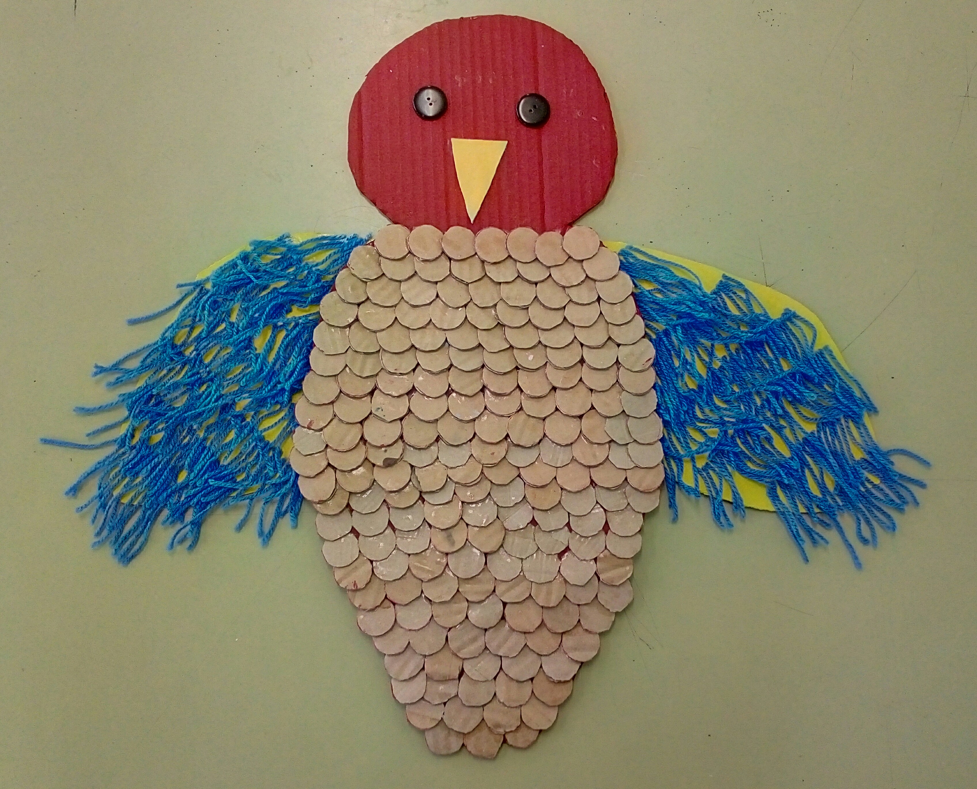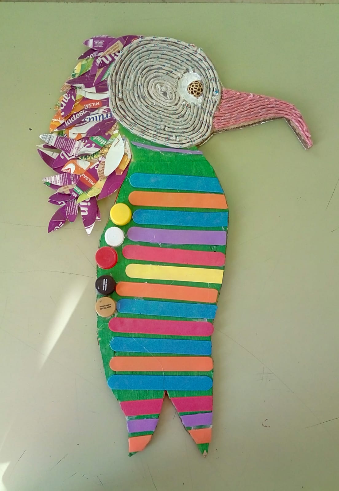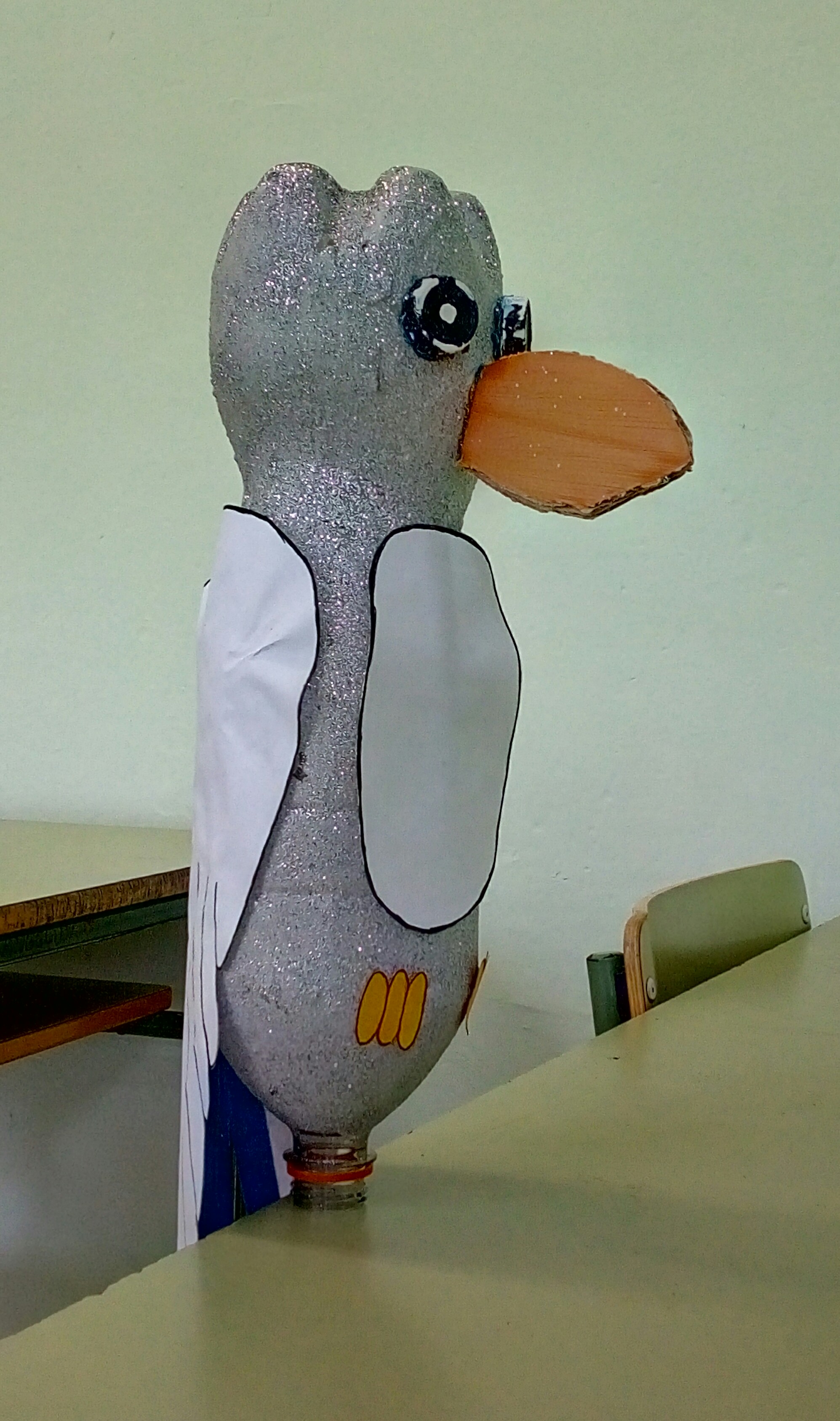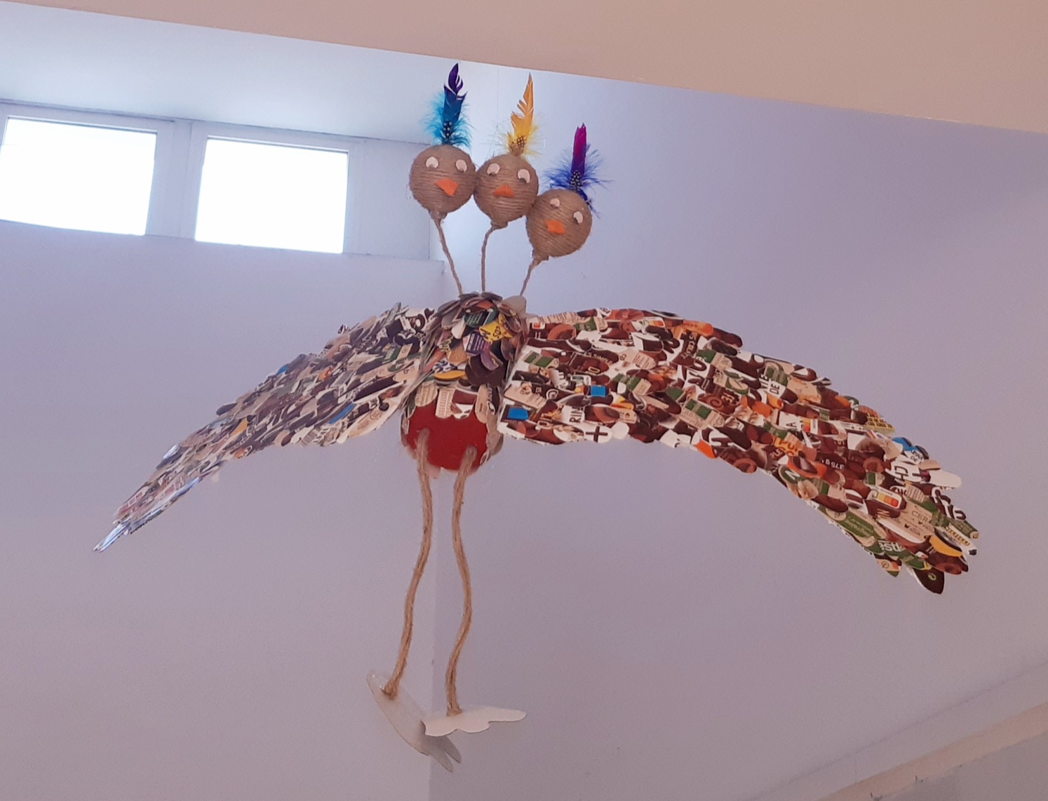 También se han realizado unos pájaros que adornan nuestras escaleras y parte del centro con materiales reciclados. Todos han sido creados en la clase de Plástica de Adriana Espinoza, nuestra compañera a la que agradecemos su colaboración.